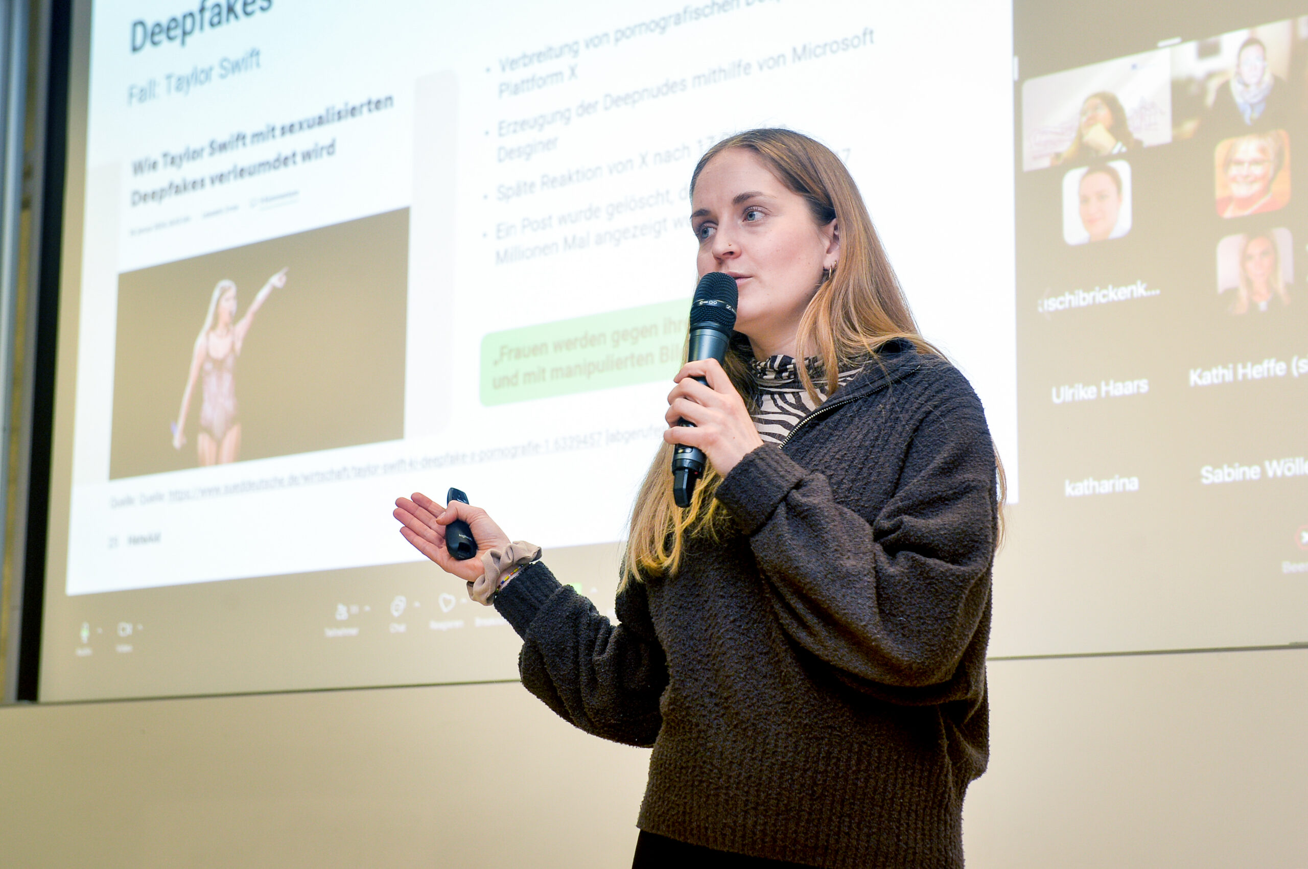 Als Referentin konnte Kathi Heffe gewonnen werden, Expertin für digitale Gewalt bei der gemeinnützigen Organisation HateAid. Ihr Vortrag erwies sich als echter Eye-Opener und machte eindrucksvoll deutlich, wie allgegenwärtig digitale Gewalt ist. Zugleich ermutigte sie die Teilnehmenden, sich aktiv und selbstbewusst gegen digitale Übergriffe zur Wehr zu setzen.